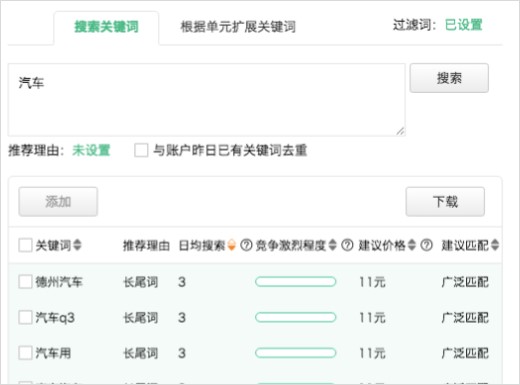 By dividing keywords into different categories, the keyword planner can help you visualize ad groups more clearly. For example, in the image below, the keyword planner has grouped keywords regarding ‘General words’, ‘Synonyms’, ‘Product name/type’, ‘Price’, ‘Public praise/question words’ and ‘Aftersales’ together, allowing easy identification of commonly searched keywords associated with the brand and its products.